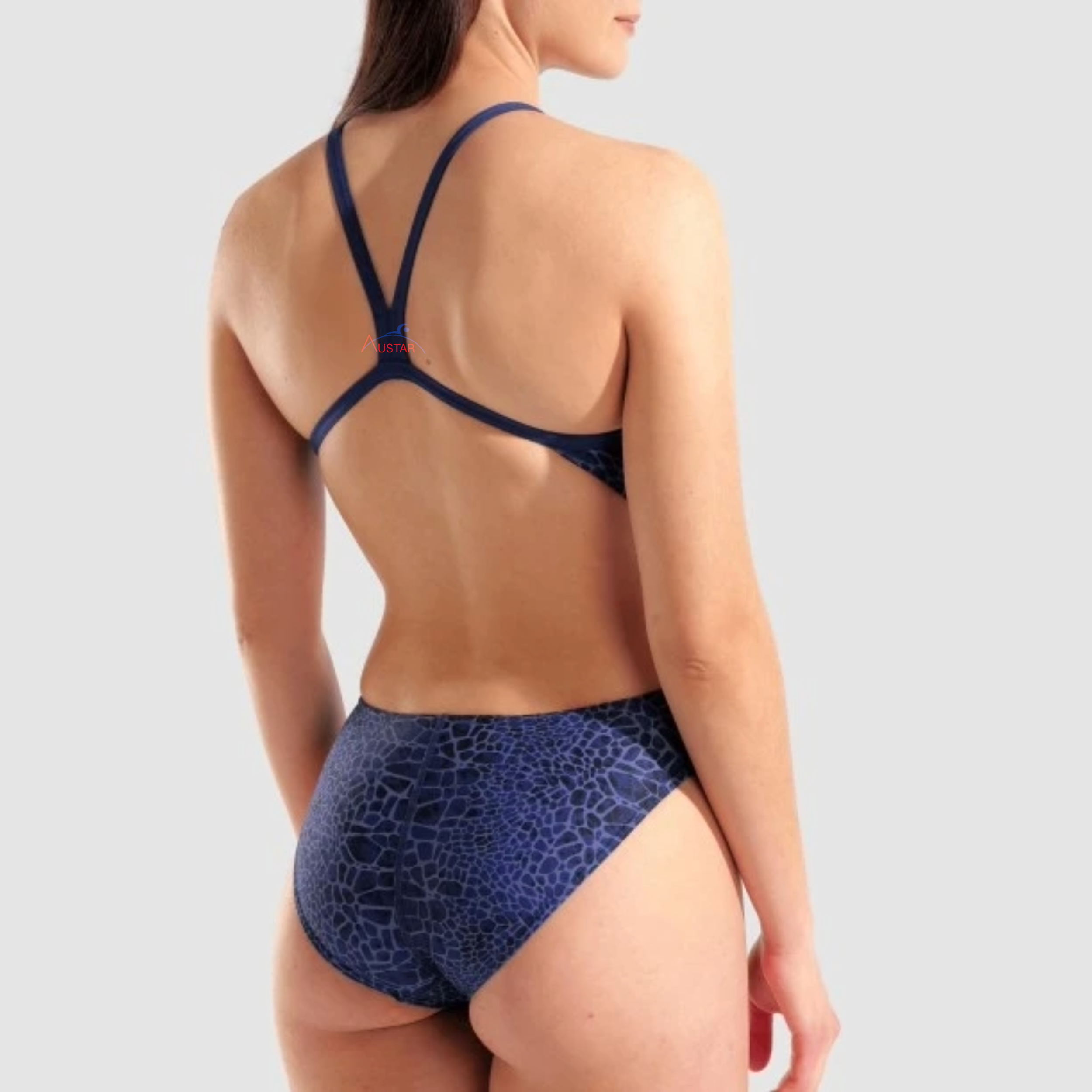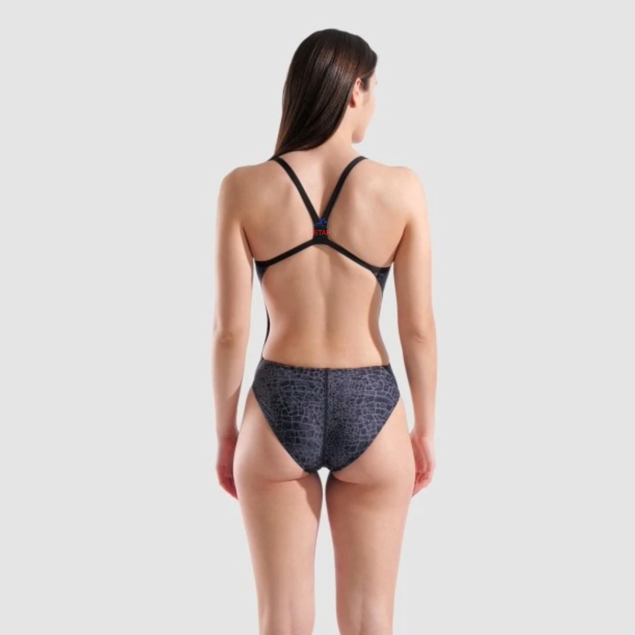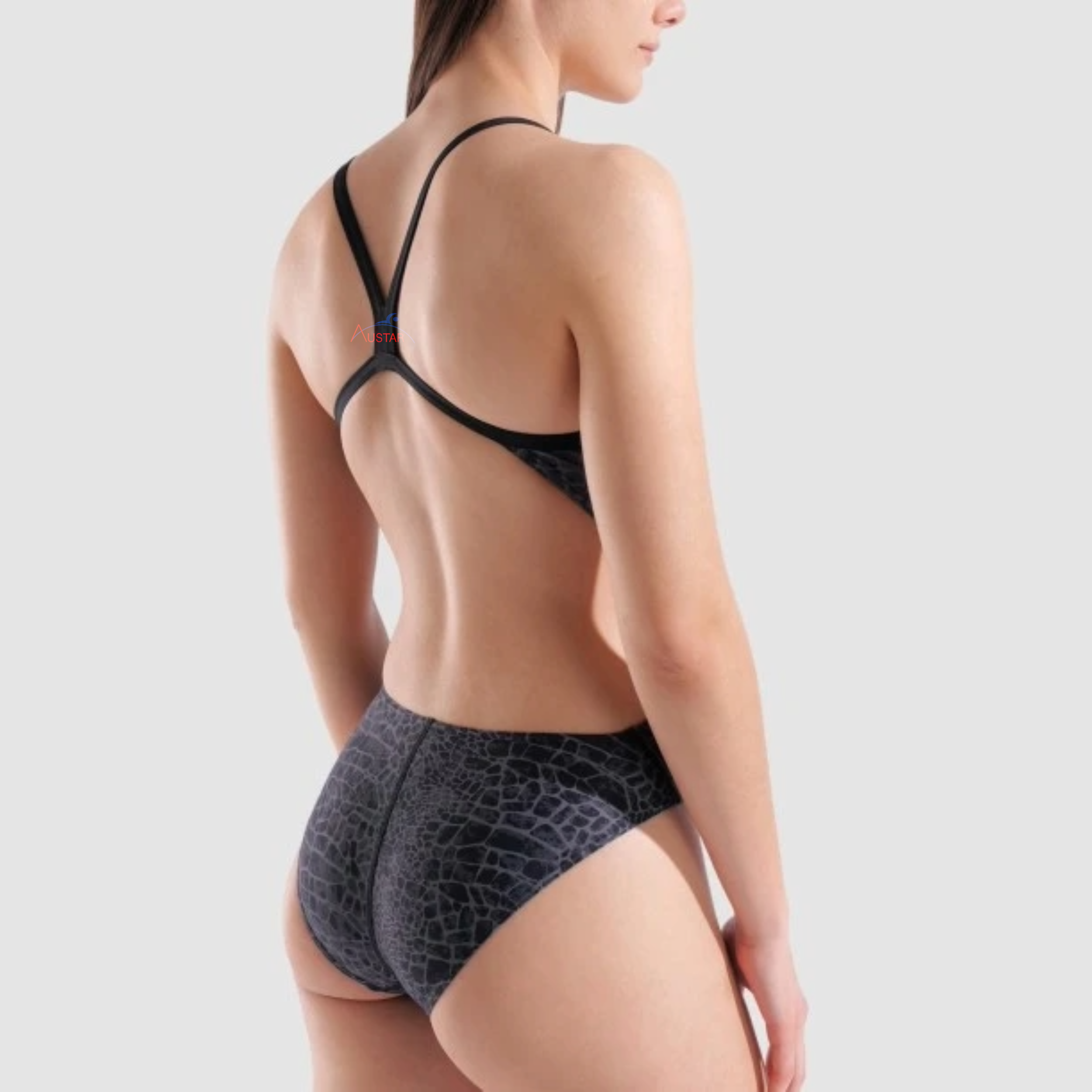 Arena Performance 系列的女款 Snakeskin Lightdrop Back 連身泳衣,極其耐用、抗氯且時尚有型!