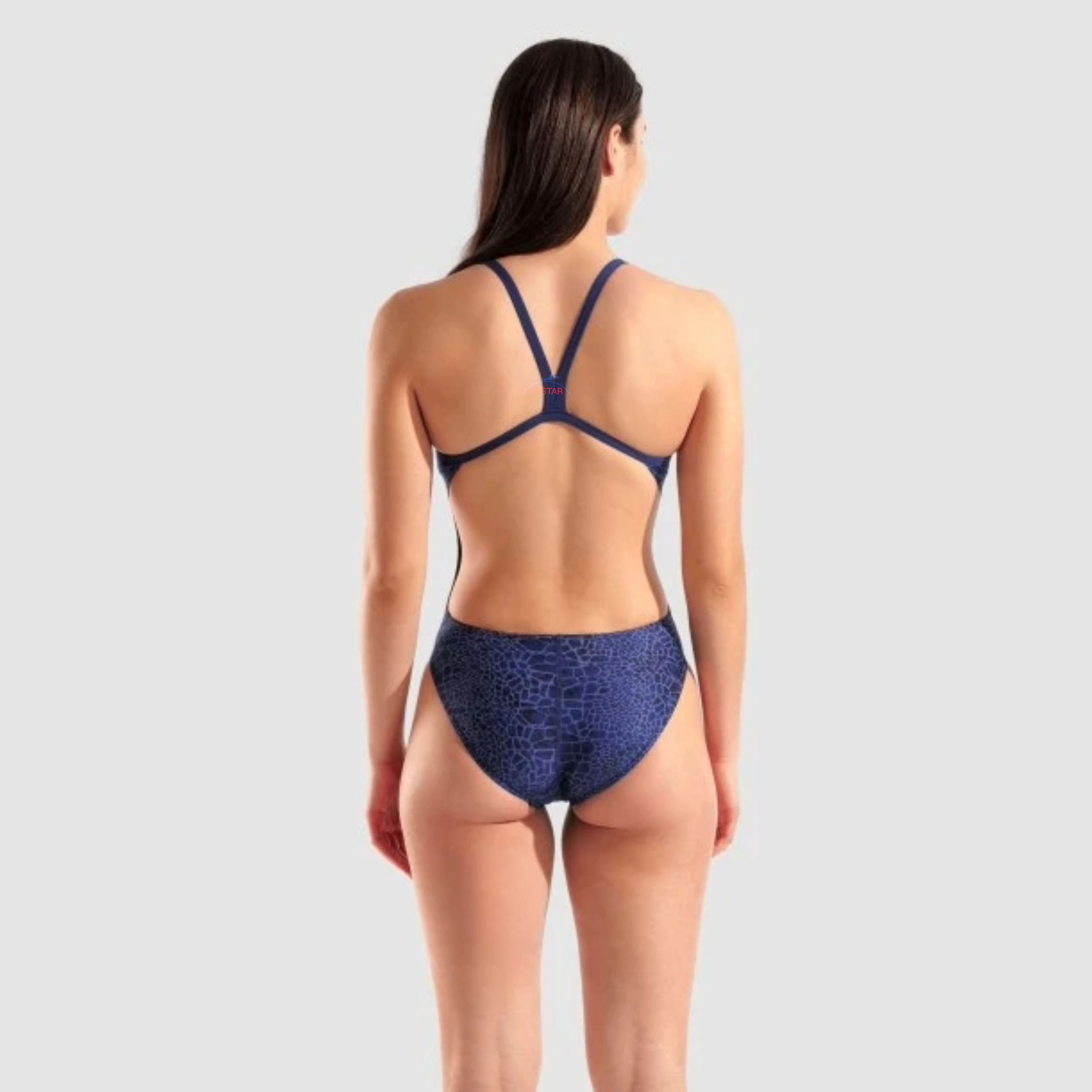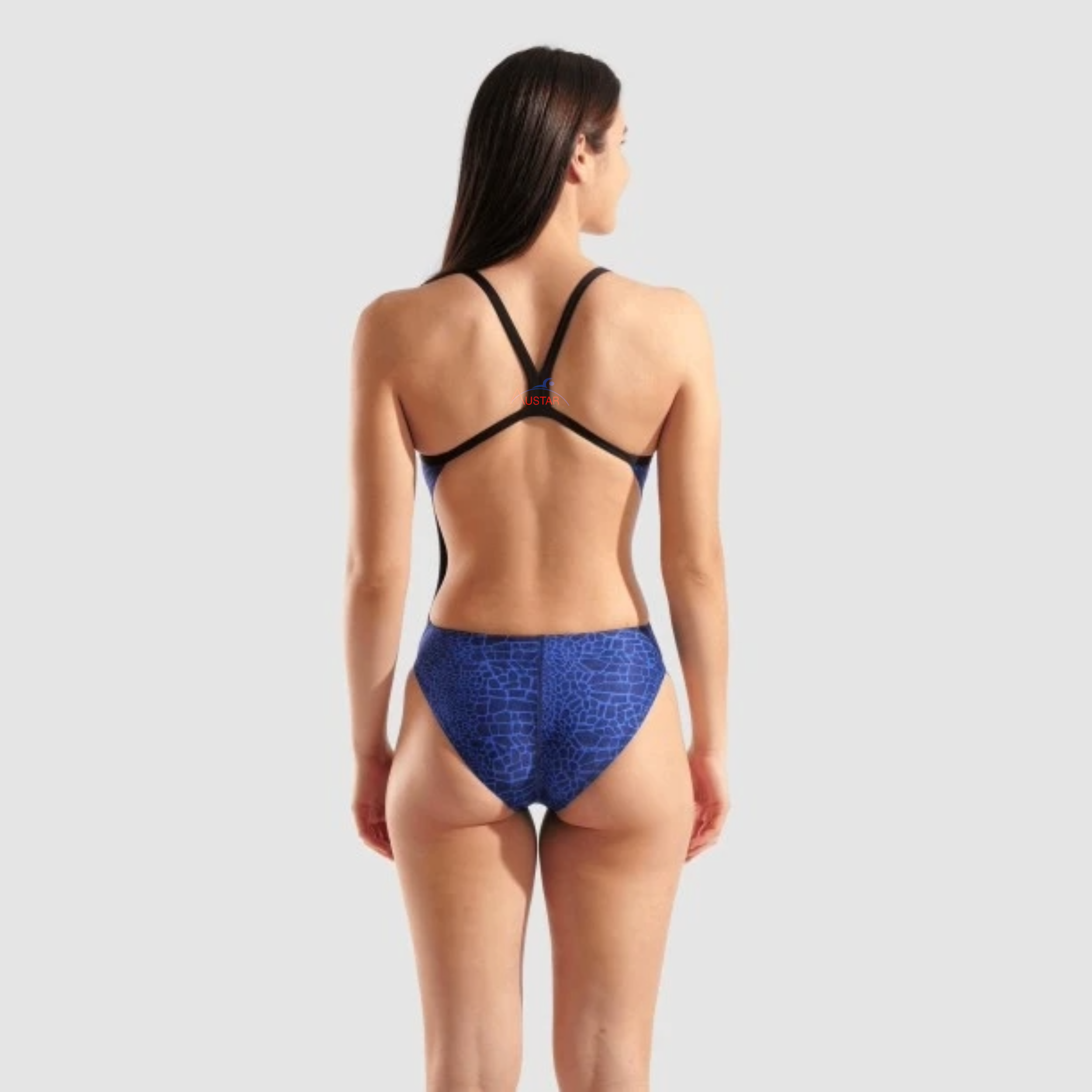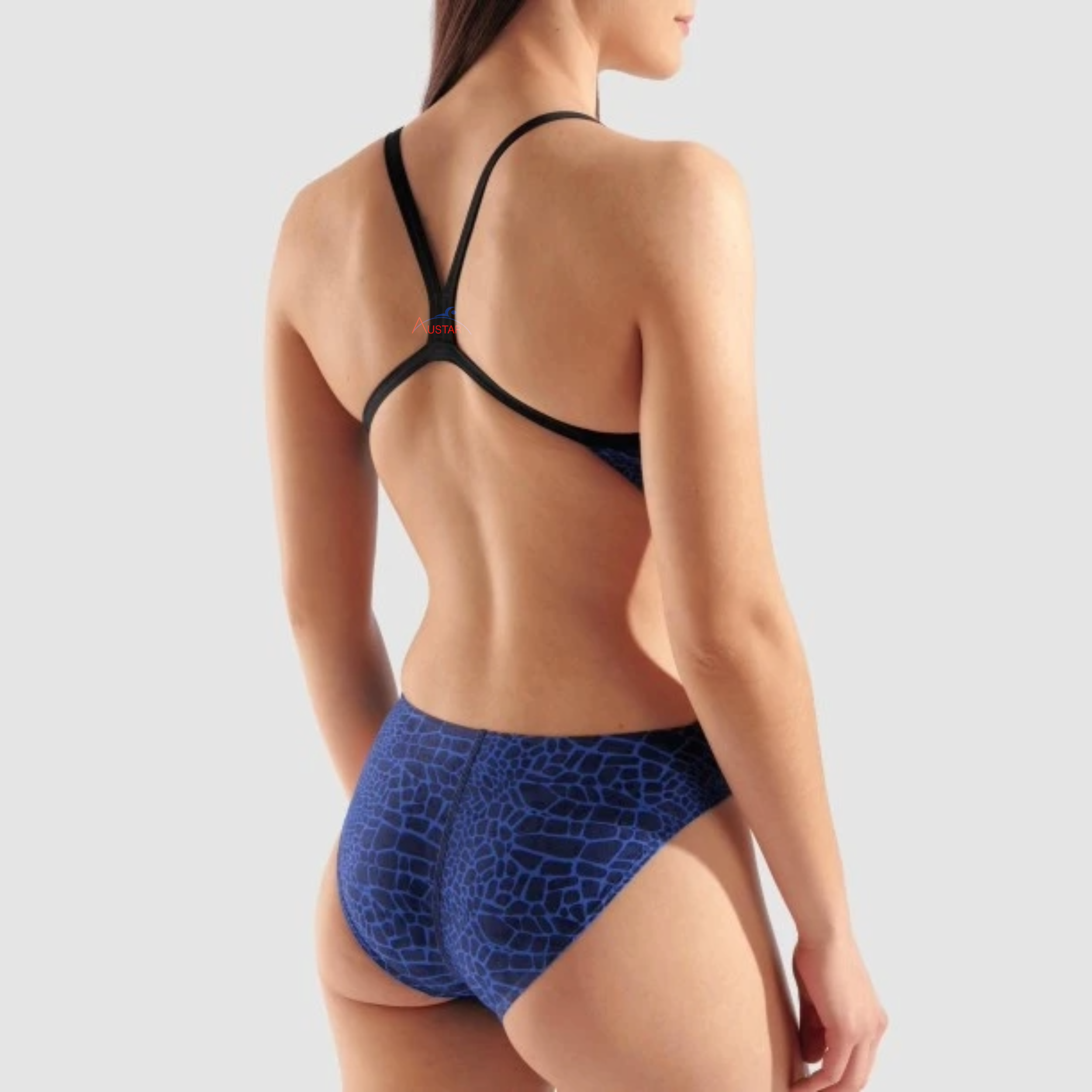 Arena Performance 系列的女款 Snakeskin Lightdrop Back 連身泳衣,極其耐用、抗氯且時尚有型!